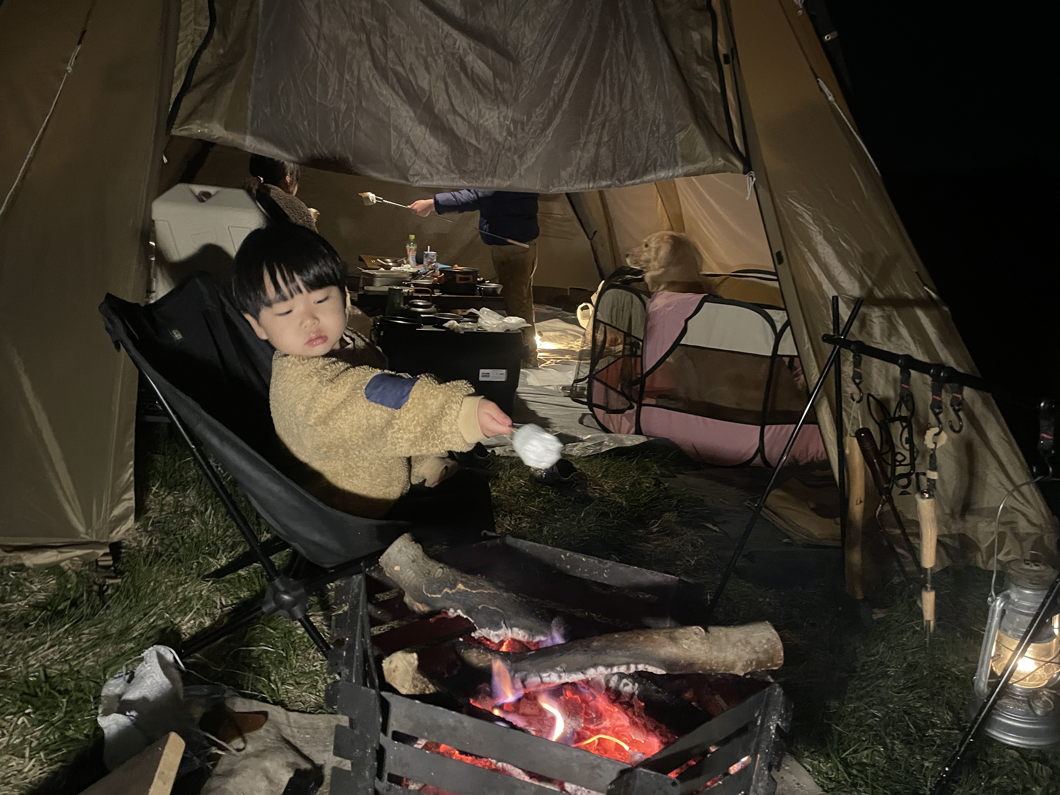 こどもたちが室内遊びしてる間、ぼーっと焚火しながら昼寝