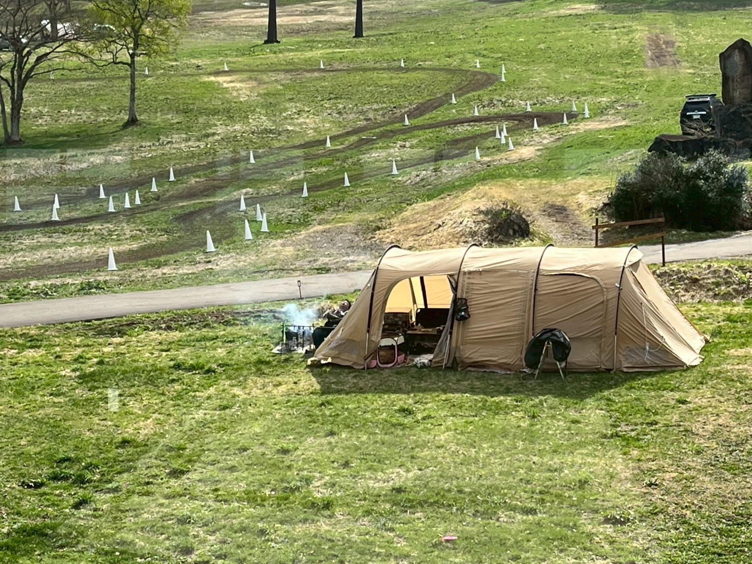 こどもたちはテントから見えるこの範囲で遊んでいました