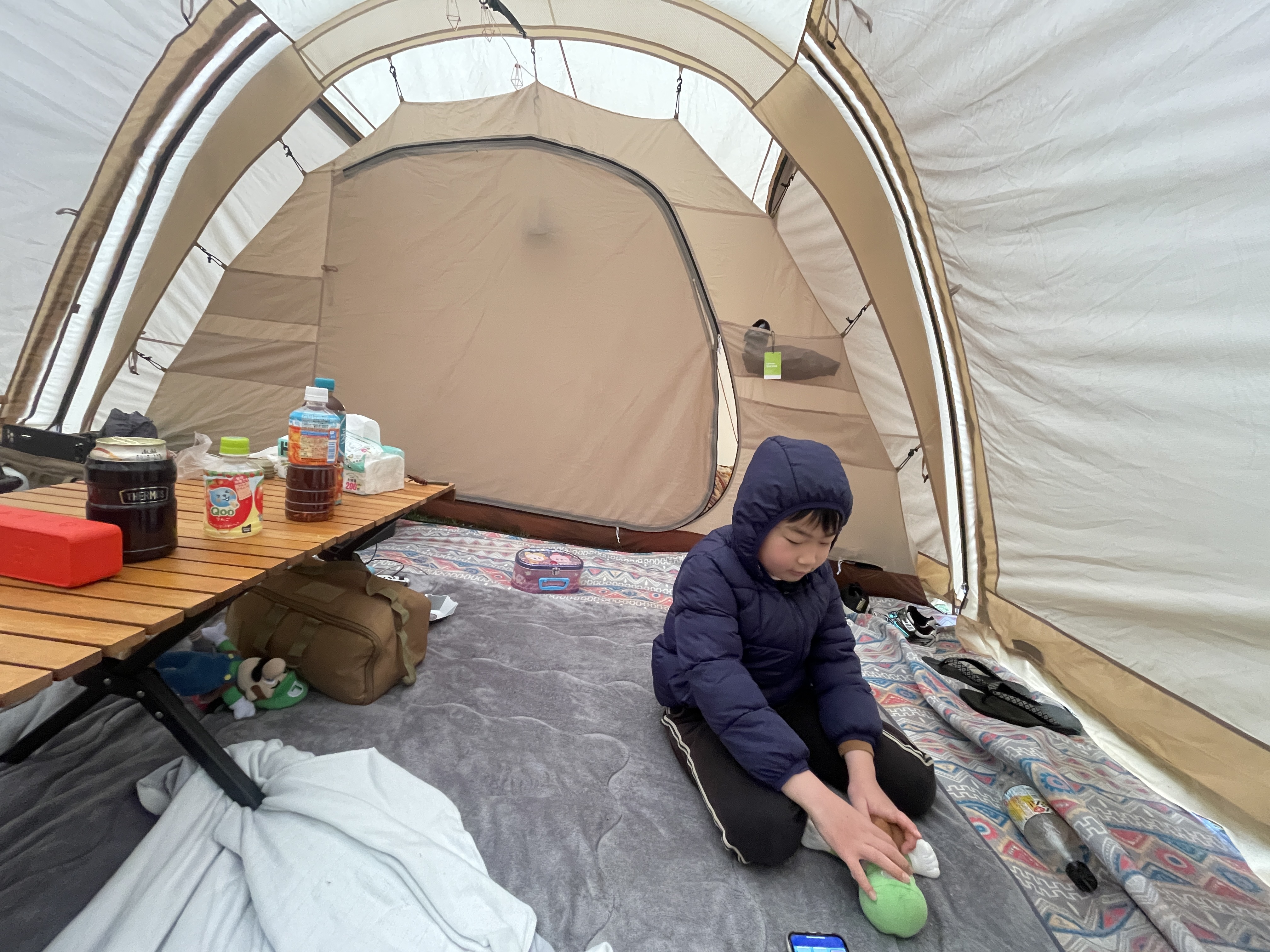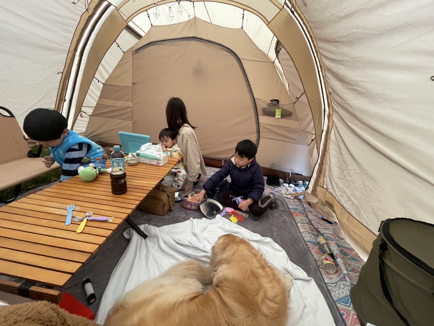 リビングスペースがひろいのでみんなでテントの中でぐだぐだ