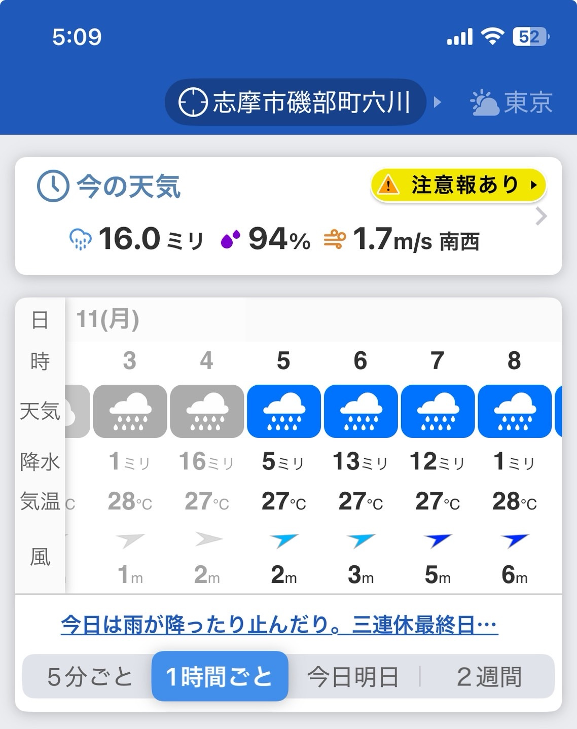 朝と夜は雨つよでした