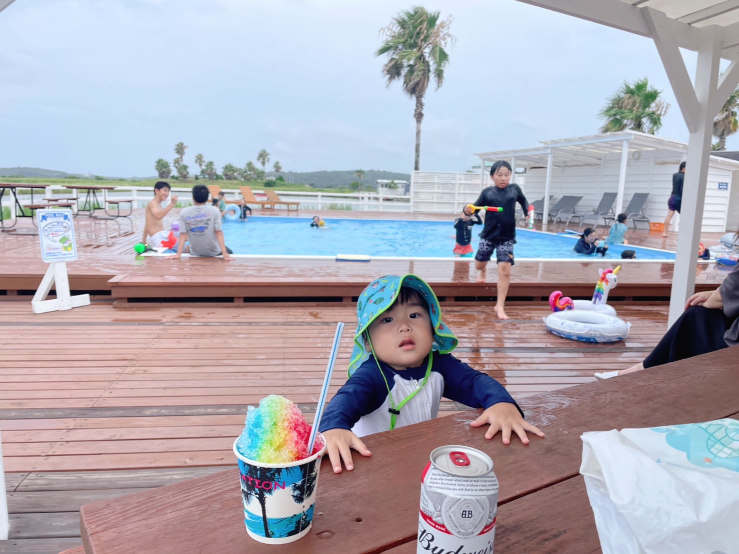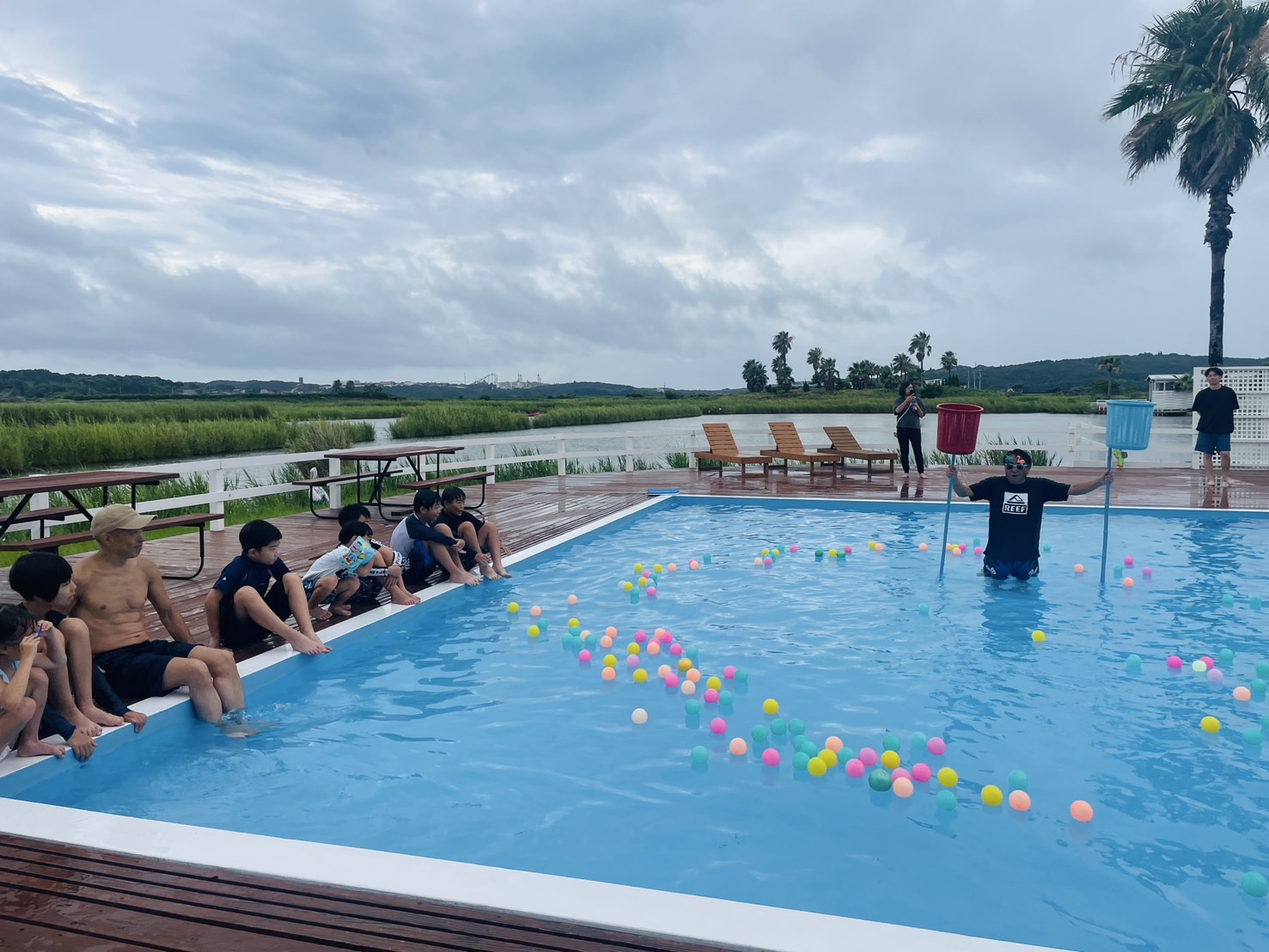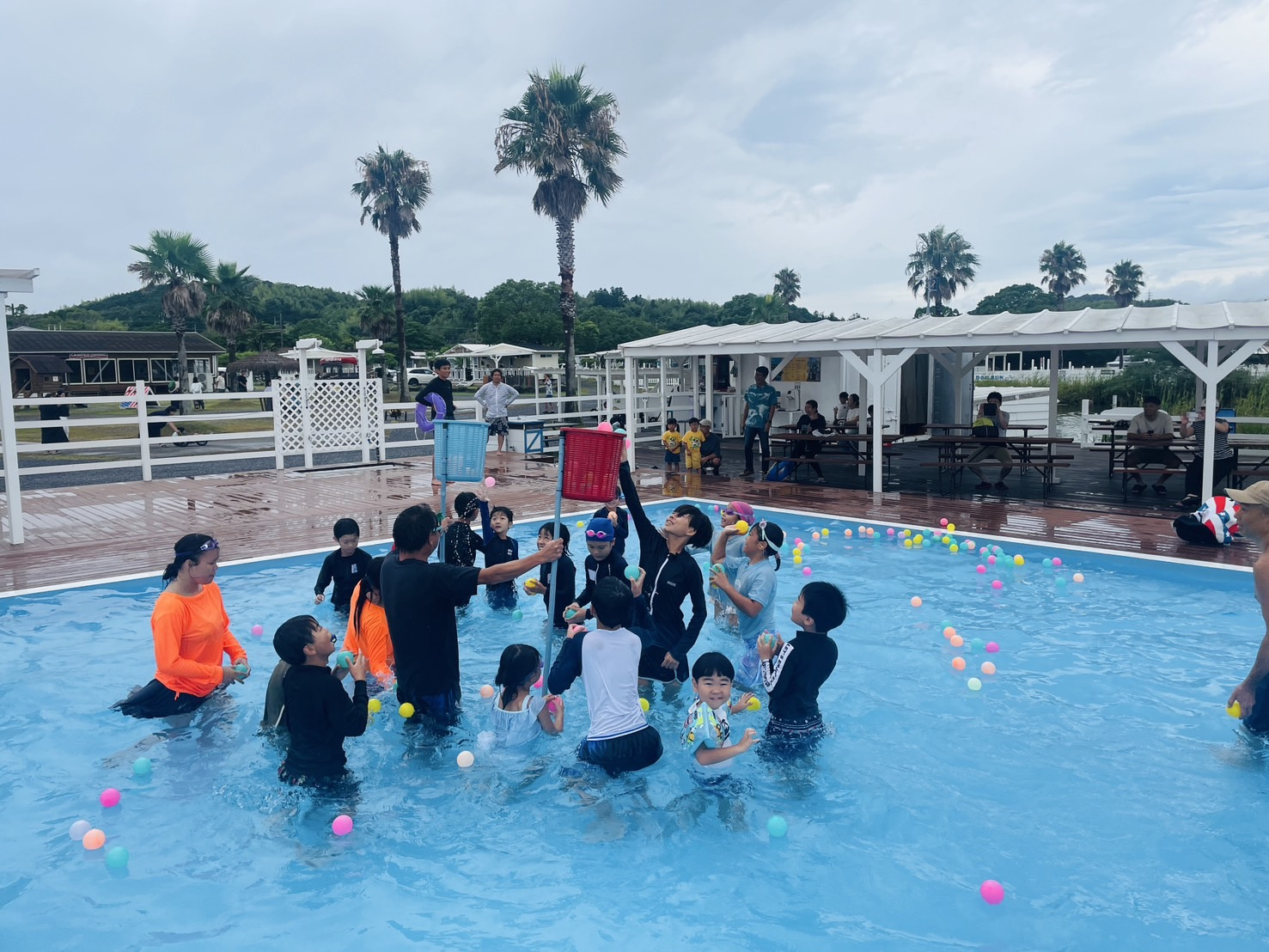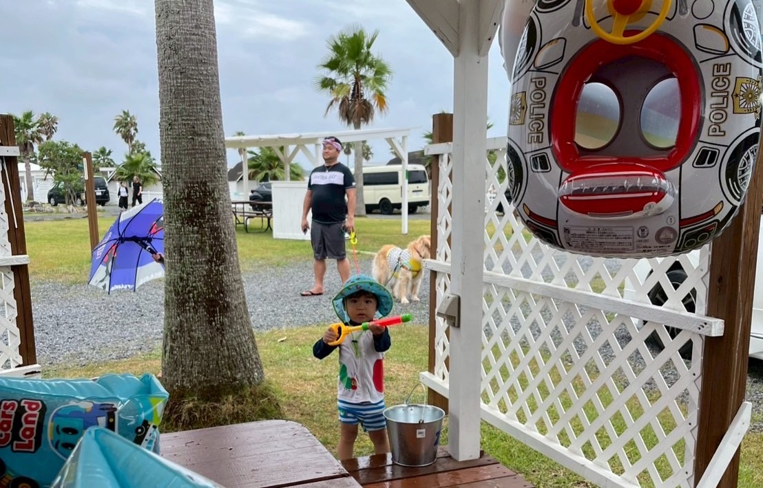 さっそくキャンプ場のプールで遊びます!