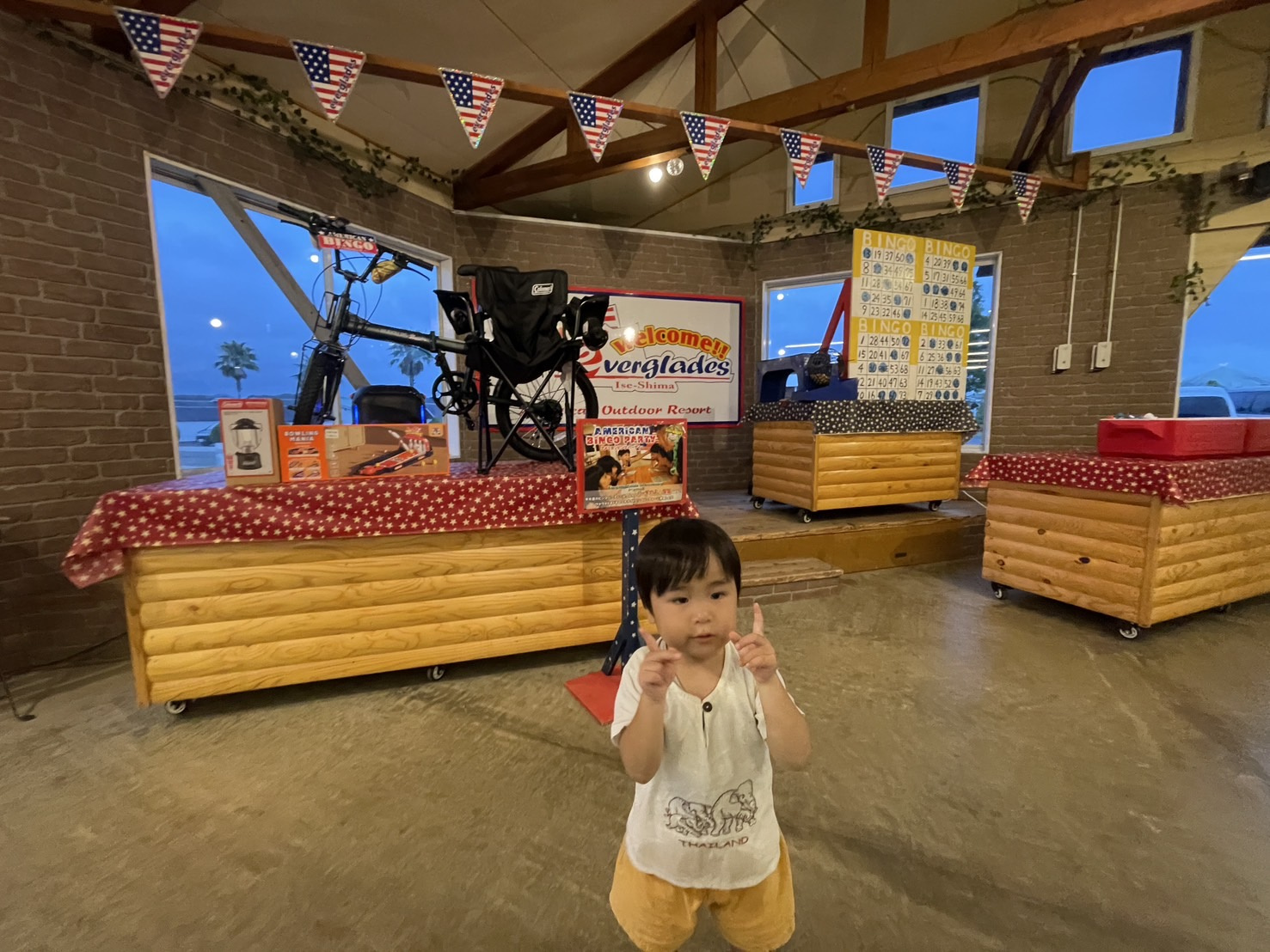 夜ごはん食べて、お風呂入って、夜はビンゴ大会