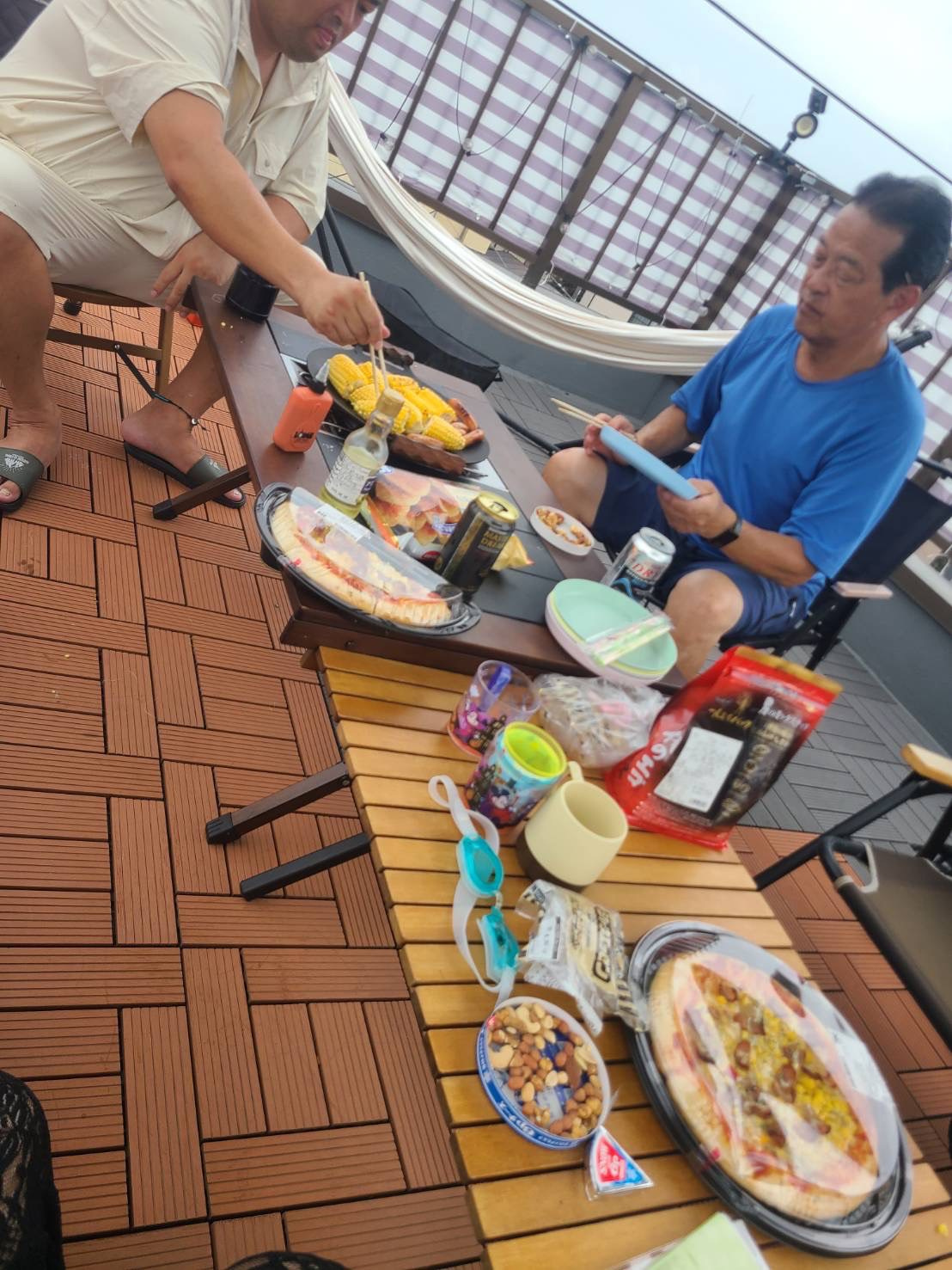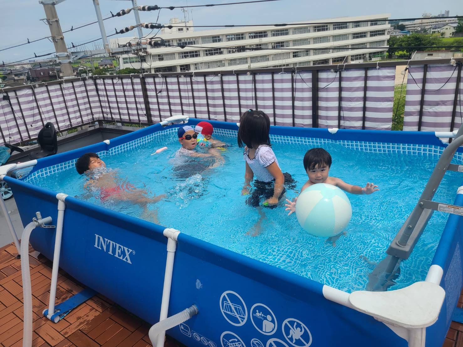夏休み初日は、父と妹と甥姪がきて屋上でプール遊び!