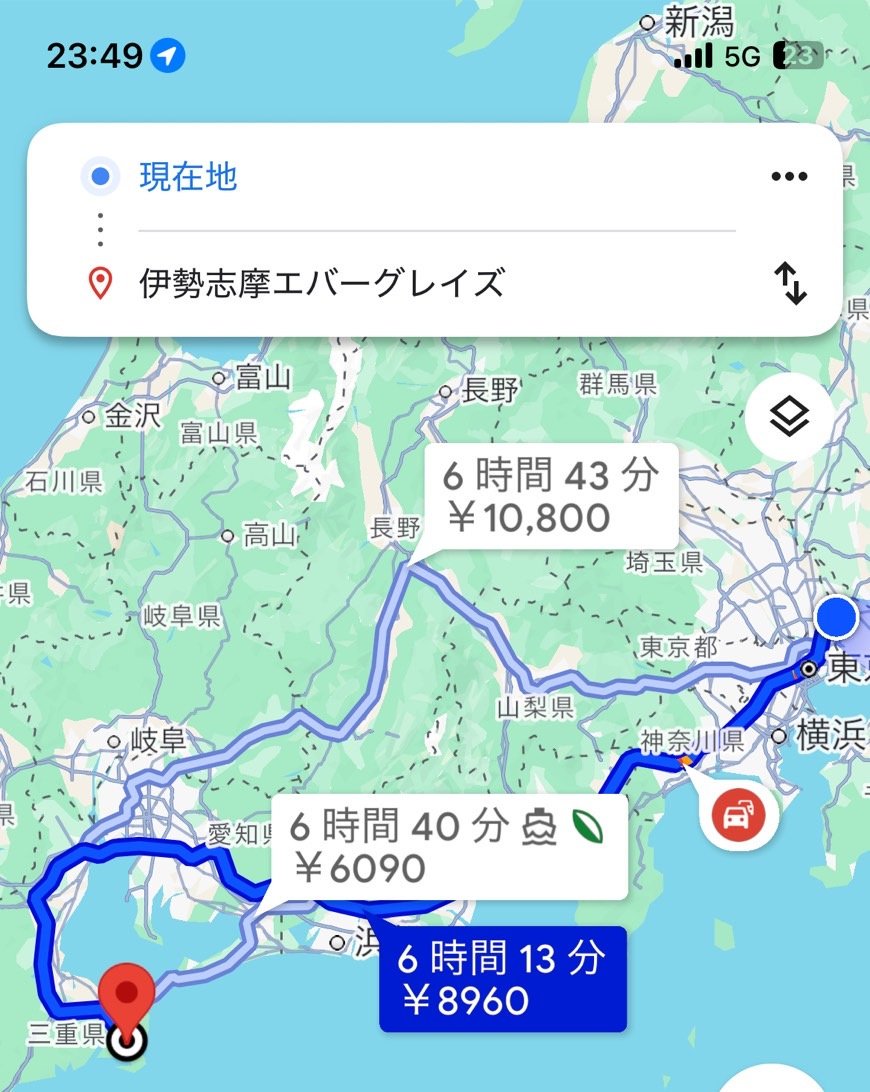 この日の夜に三重県へ