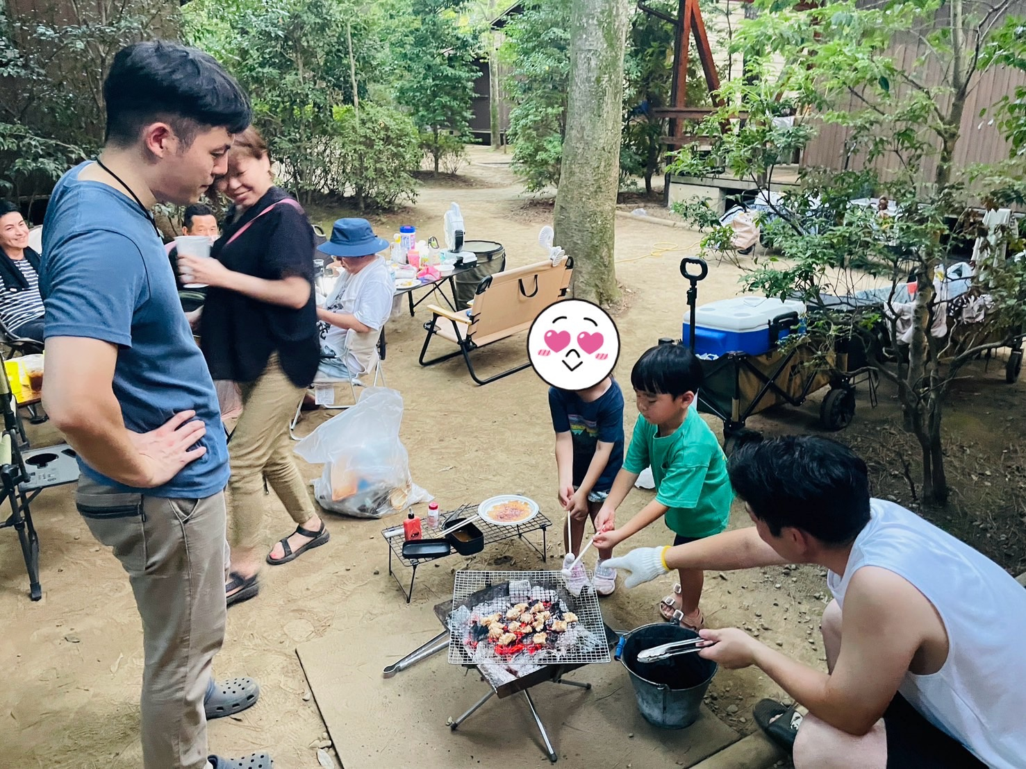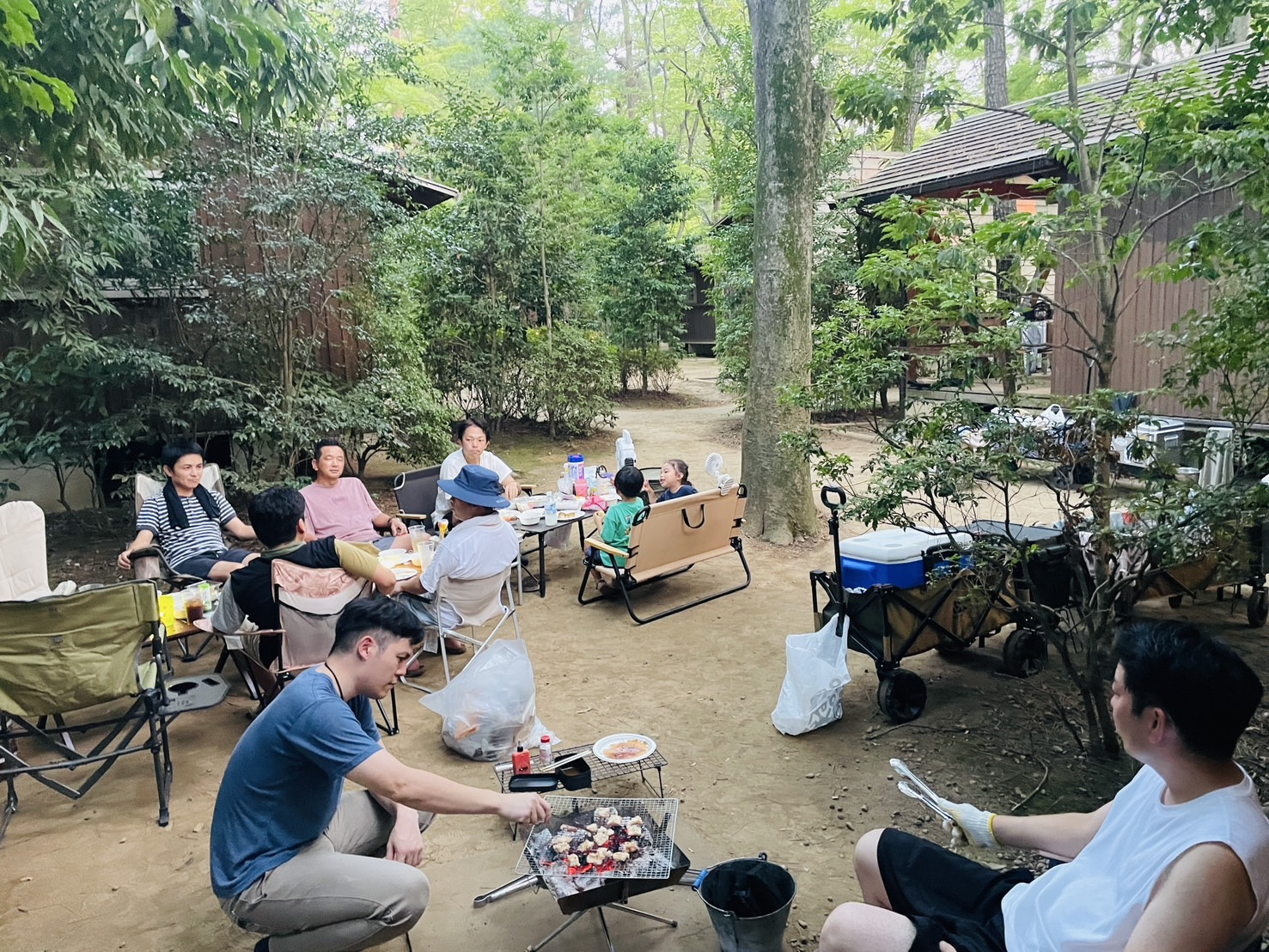 そのうち人数も集まり、みんなでBBQ